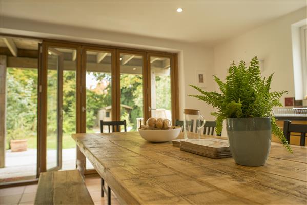 - It has a huge farmhouse kitchen, with a long farmhouse table, big enough for 14 of you to eat together.